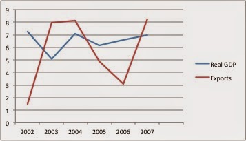 Figure 1. SSA GDP and Exports growth in percentage before the Crisis