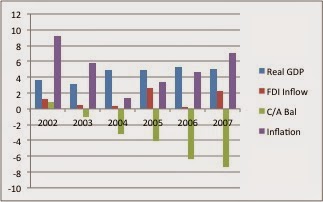 But with all the improved growth level in the Ghanaian economy, the Current Account balance did speak an actual different story. Figure 4 indicates a current account deficit that kept growing from 2002 to 2007. An economy that is being run on a current account deficit is due to the increase in the value of imports of goods, investment, services, than that of the value of exports. It is sometimes referred to as a trade deficit.
