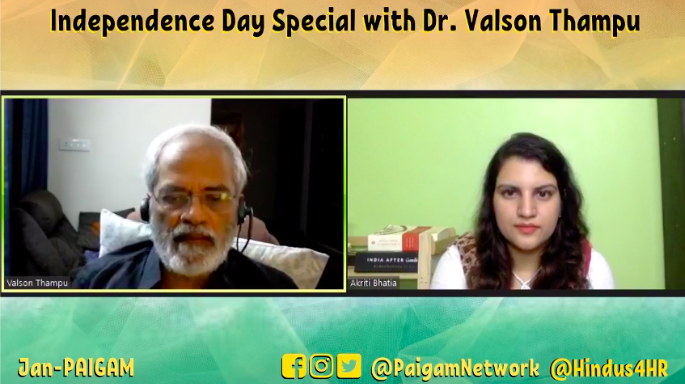 Ms. Bhatia began the discussion by raising vital questions with regards to the freedom celebrated within India, the shift in the ideas of this freedom and the role of faith. She posed questions on the different natures of oppression individuals and communities continue to fight against, in order to obtain freedom within the country. Here, oppression was identified as socio-economic and political disadvantages and discrimination faced on the basis of a religious identity. Dr. Valson responds by stating that in order to understand the current freedoms enjoyed within India, one needs to consider the freedoms we lost. Here, he refers to how the Indian subcontinent was constantly subjected to external rule, either being conquered, or colonised. It is through this subjugation that India came to realise that “freedom is endangered by vested interest”, wherein economic and financial gains of others are prioritised over human rights and development. Post- independence, Dr. Valson believes that despite being an independent sovereign state, “having the reins in our hands”, freedom for all is still not guaranteed within India.