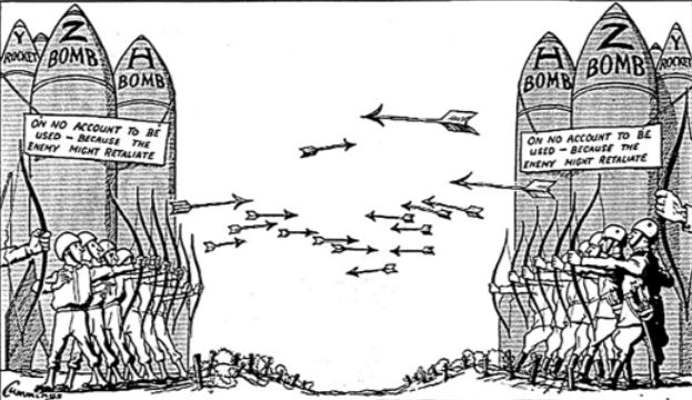 The idea of nuclear deterrence combines classical military deterrence theory with the destructive capabilities of nuclear weapons. According to deterrence theory, a nation can dissuade an adversary from taking an unfavourable action under the threat of retaliation posed by its military forces. The strategy of deterrence is as old as war itself, which is evidenced by the fact that the famous Chinese strategist Sun Tzu even commented on it in The Art of War: “Therefore the skilful leader subdues the enemy’s troops without any fighting…With his forces intact he will dispute the mastery of the Empire, and thus, without losing a man, his triumph will be complete.” However, with the advent of the nuclear age, the theory evolved from a military strategy to a political one, according to which nuclear powers and their allies would rely on the credible threat of mutually assured destruction (or MAD) to encourage one another to at least think twice before acting on their worst instincts.