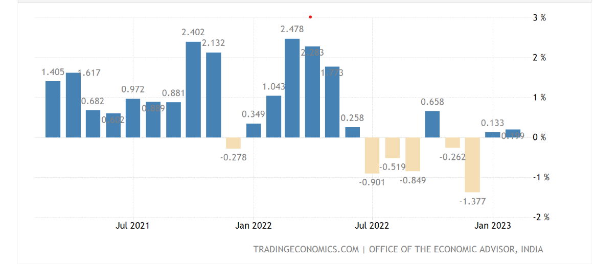 The above graph shows the producer price inflation which was considerably low. Low PPI can have both positive and negative effects on the economy. On the positive side, a low PPI can help to keep inflation low, which can help to support consumer purchasing power and economic growth. Low PPI can also make it easier for businesses to maintain profit margins and may lead to lower prices for consumers. On the negative side, a low PPI can be an indicator of weak demand for goods and services, which can lead to lower production levels and slower economic growth. Low PPI can also lead to lower profitability for producers, which can lead to job losses and reduced investment. The current low PPI has been having an adverse effect on the company’s profit. Since the PPI is low it means the cost of raw materials that the company needed for producing the goods was low which can’t be the reason for the increase in prices of their goods. As mentioned above, due to low rural consumption the company revenues stagnated, furthermore due to volatile times in the Indian market, and the companies needing to show numbers to the shareholders to maintain confidence among them they took the approach of increasing the prices to increase their revenue despite sales volume remaining low.