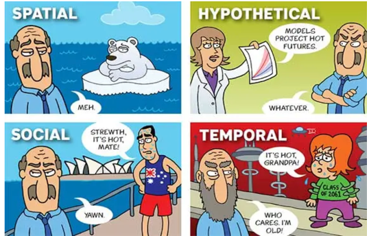 However, the idea that our brains intrinsically find it challenging to process climate change is highly problematic as it frames the climate-policy narrative in a way which might pose a potential barrier to climate action. Additionally, there are several other factors in play which lead to further delay in action. One major issue is Psychological Distance from climate change which can be manifested in the following ways: spatial (“the effects will be seen in Africa so I don’t care”), temporal (the effects will be seen in 2050, I will die by then), social (“global south is more vulnerable, so I do not have to worry”) and hypothetical. Other underlying drivers of delayed climate action/inaction can be the 5Ds: Distance, Doom, Dissonance, Denial, and Identity. Doom implies the psychic numbing to climate change after repeated exposure to climate-related information. Dissonance is the discomfort in acknowledging the phenomenon when it contradicts or conflicts with what we do or believe in. The fourth stage is denial which in today’s context is a mechanism of defence stemming primarily from fear or guilt. The final stage is identity wherein personal values triumph over facts. Identity is a prime factor in climate action/inaction depending on its alignment with our values and beliefs.