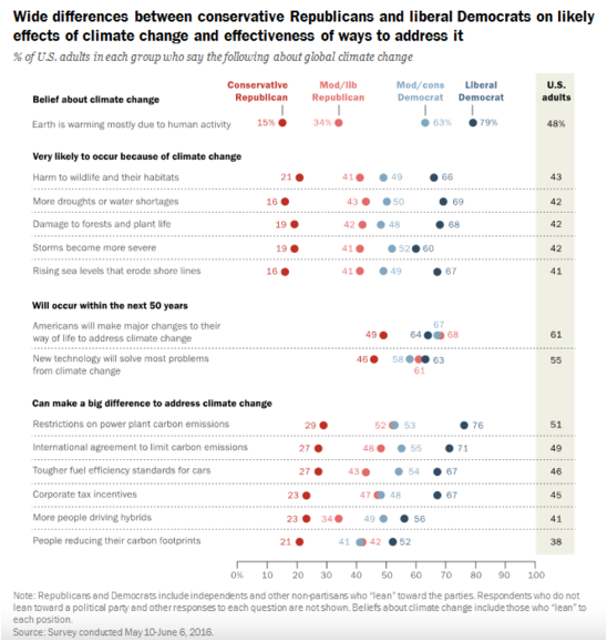 Several surveys and reports have been conducted in the United States to analyse American Public Opinion on Climate Change. A widening partisan divide based on political affiliation can be witnessed. Figure 3 illustrates the findings from a Pew study on the polarising views on climate change between conservative Republicans and liberal Democrats. The public’s view on climate scientists and their beliefs on climate change is broadly explained by their political orientation and personal concerns with climate change.