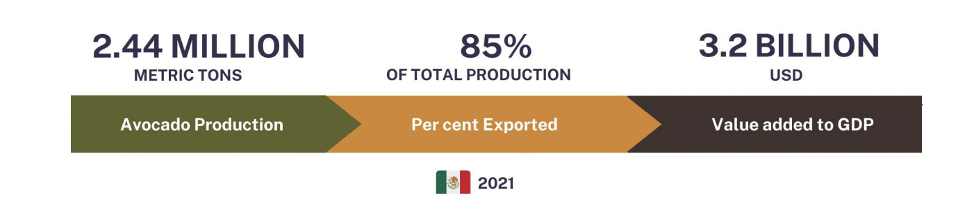 With an annual production of 2.2 million metric tons, Mexico stands as the world’s largest producer and exporter of avocados. The Mexican avocado market is characterized by its well-established supply chains—including large and small-scale producers that interact in a highly competitive market—to drive up the country’s output and employment. This industry creates over 78,000 permanent and over 310,000 seasonal jobs. Hass is the leading cultivar (variant) of avocados in Michoacán, Mexico’s avocado capital, and is also the preferred variety of the US, the largest export market for Mexican avocados.