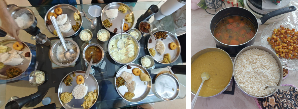 Beyond just practicality, Loretta Baldassar writes about diaspora families creating “co-presence” through shared activities across distance. My sister is not only having the recipe trickle down to our generation, but she is also reliving the kitchen she left behind. This technology driven co-presence is more fragile, dependent on good connectivity, time zones and deliberate scheduling; but these connections are consciously chosen and actively maintained. Through the screen, my mother can see that her daughter is doing well on her own, and my sister can see the dinner my mother made, served on the same steel plates that we got from our grandparents’ house. Having these visible objects become a way to prove that home still exists, that traditions still continue. Even while staying at student accommodation, having the same cutlery I use for having midnight cravings as I did as a kid gives me the assumed sense of proximity to my family back home. Having my family see this on video call portrays the more effortful and more deliberate and valued expression of love.